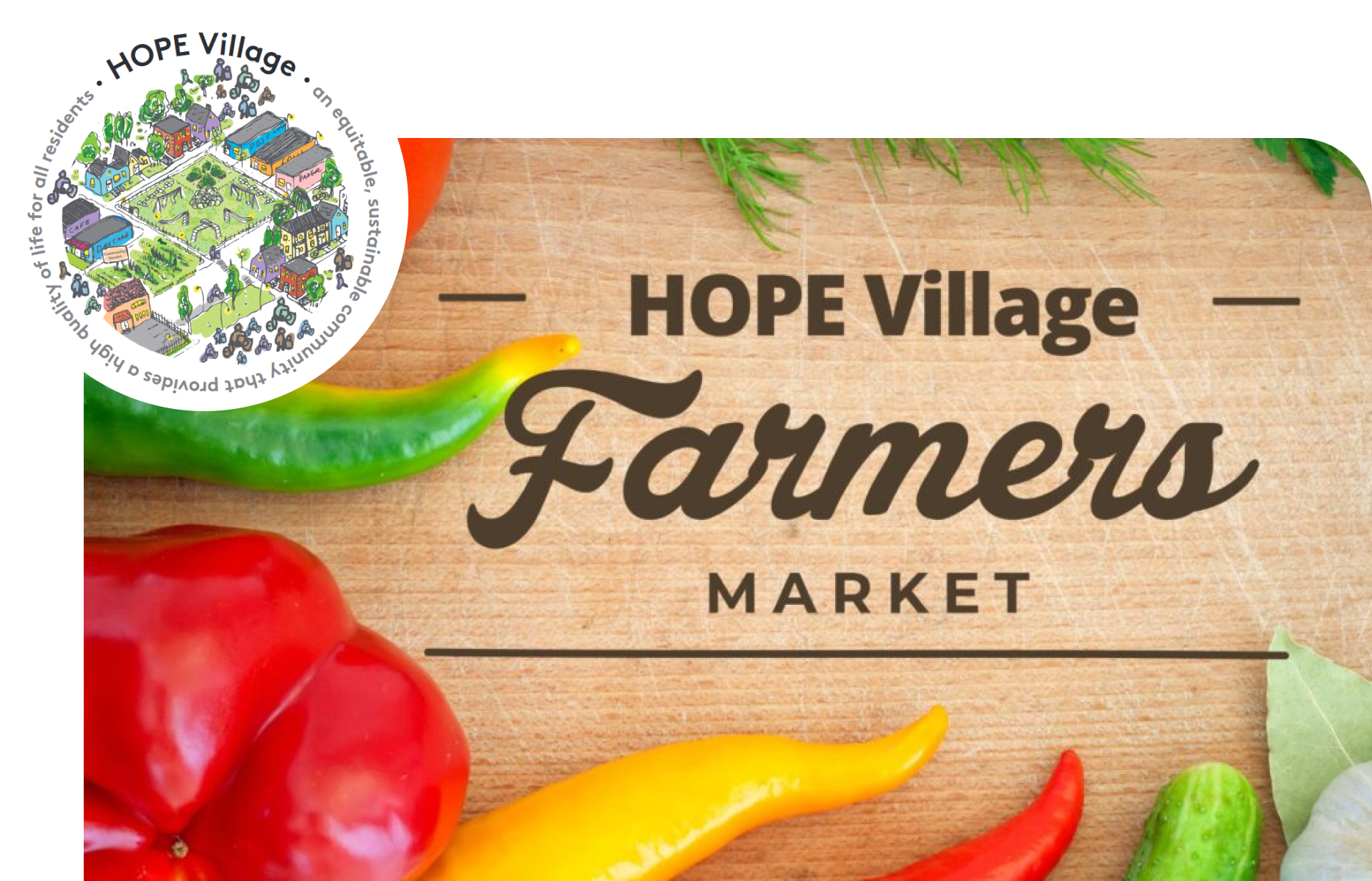 The Hope Village Farmers Market not only brings fresh and local produce to the Hope Village every week – it is also a neighborhood connector and a hub of cultural activity, with music, spoken word performance, yoga, and much more!
